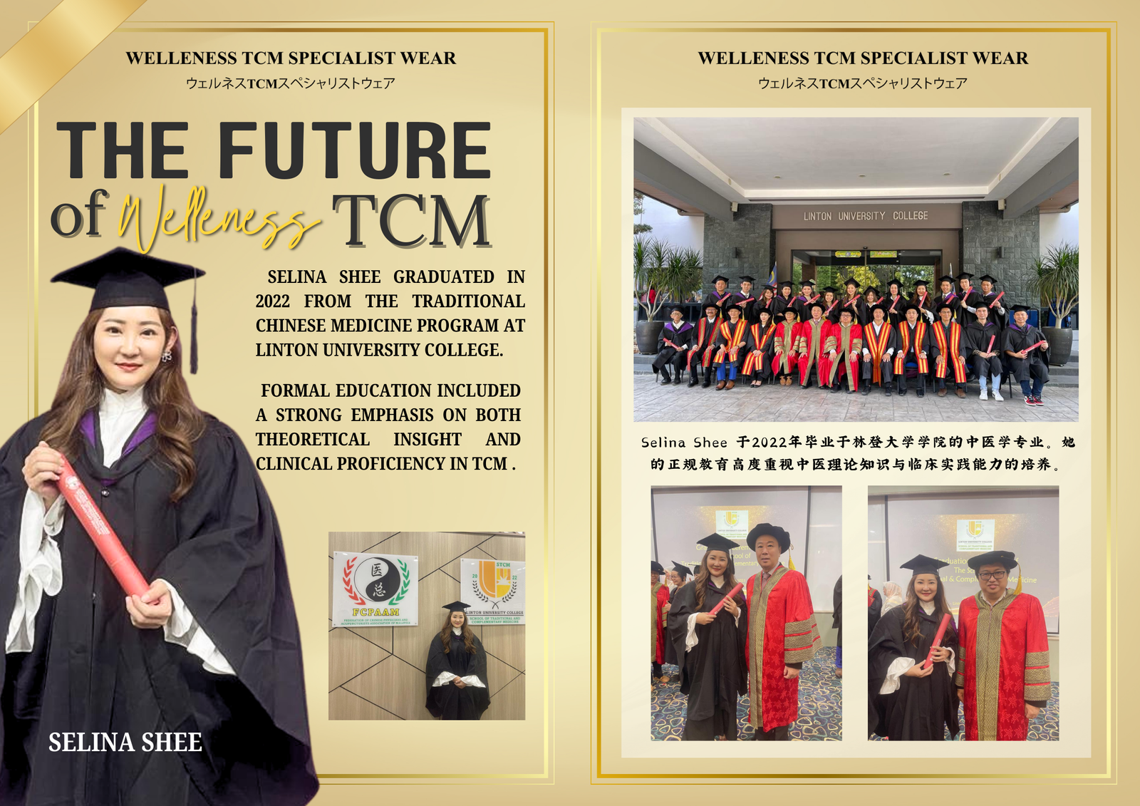 🎓 Founder Selina Shee graduated from the Traditional Chinese Medicine (TCM) program at Linton University College, integrating TCM principles into wellness product innovation.