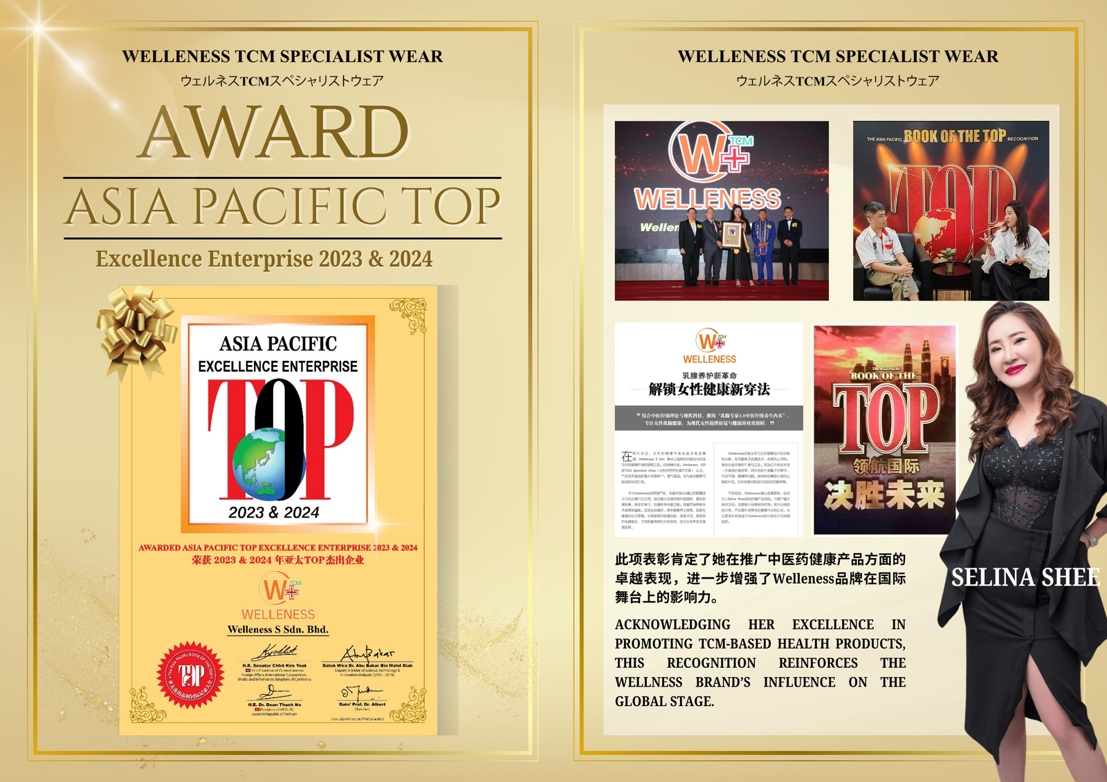 🌟 WELLENESS 荣获 Top Brand 品牌大奖,并连续两年获颁 亚太TOP杰出企业奖(Asia Pacific Top Excellence Enterprise),稳固行业领先地位。