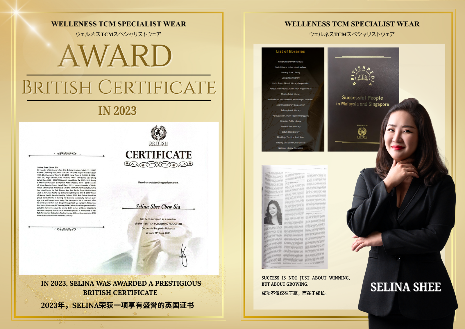 🏆 Selina Shee received a British Professional Certification and was featured in Successful People in Malaysia, earning international recognition for her leadership and achievements.