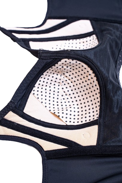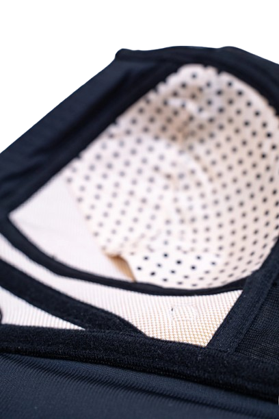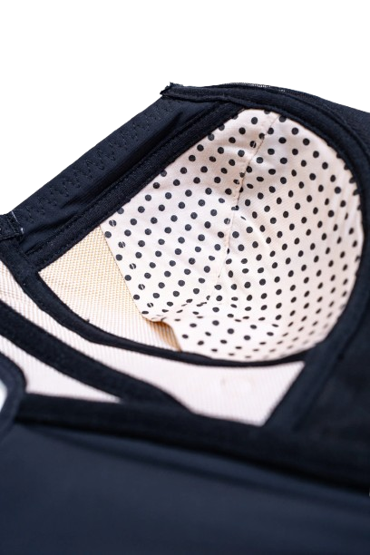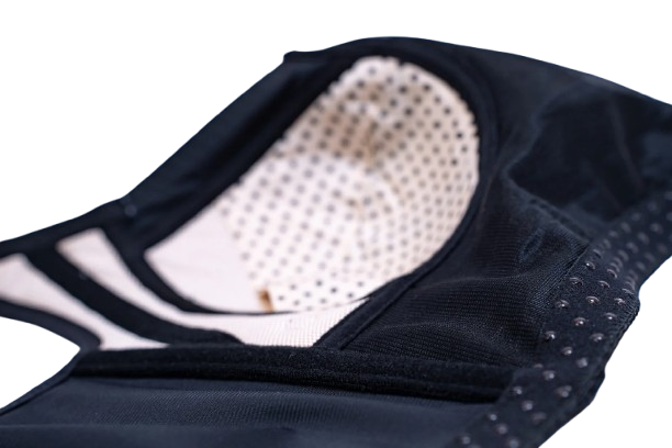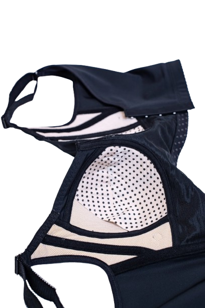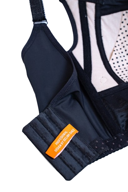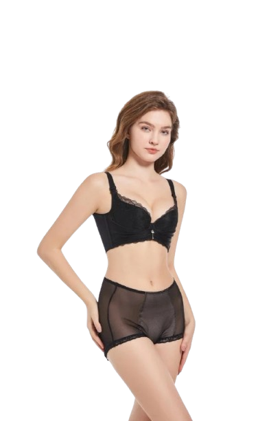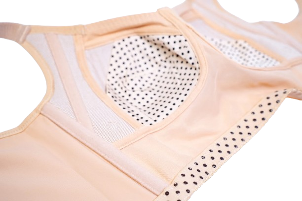 - 意大利咖啡因子创新面料: 富含咖啡因、维生素A、维生素E、脂肪酸及芦荟等天然活性成分,具有唤醒乳房活力、改善下垂外扩、抗紫外线(UPF 50+)、消脂、抗起球、蓄热保暖、抑菌除臭、燃脂、高弹性、亲肤透气等多种功效,可24小时穿着。